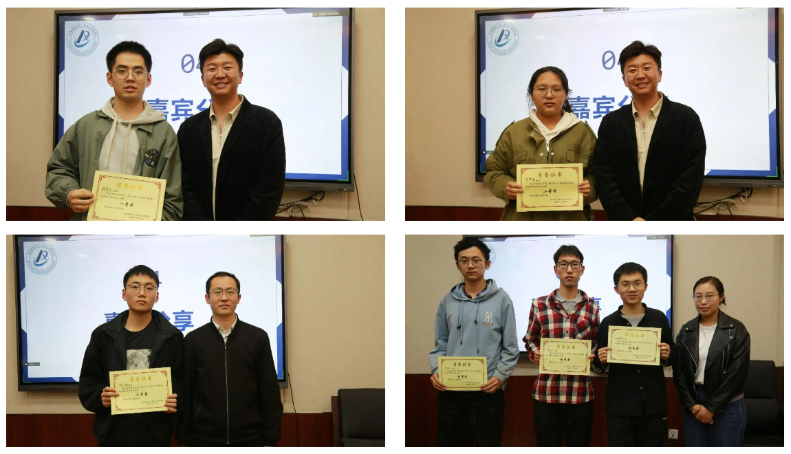 最后便是激动人心的颁奖环节,胡章权同学成功在六名选手中脱颖而出获得大赛一等奖,李梦瑶同学和殷文骁同学也同样出色分别获得了二等奖和三等奖!同时陈小东,王雨声,吕国正三位同学获得了优秀奖!
