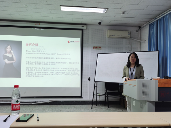 邢静玉女士就面试方面为同学们提供指导。从硬实力,软技能,价值观三个方面阐释面试过程中需要进行的准备,并指出了求职不同阶段的侧重点。结合“无领导小组讨论”和“结构化面试”两种典型的面试方式,向同学们讲述如何根据每个人不同的情况,在面试中做出优秀的表现,对同学们在面试过程可能遇到的刁钻的问题提出应对方法,并从职业HR的角度,纠正了同学们对面试过程和面试表现的一些错误的固有化认识。