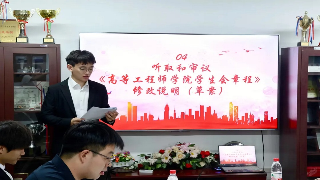 学生会章程修改的说明:随后,28圈娱乐 第十二届学生会主席团成员倪旻宣读了《关于修改<28圈娱乐 学生会章程>的说明(草案)》,确定了学生会新章程的修改细节,为新一届学生会的组织建设和工作开展提供了指导方向。