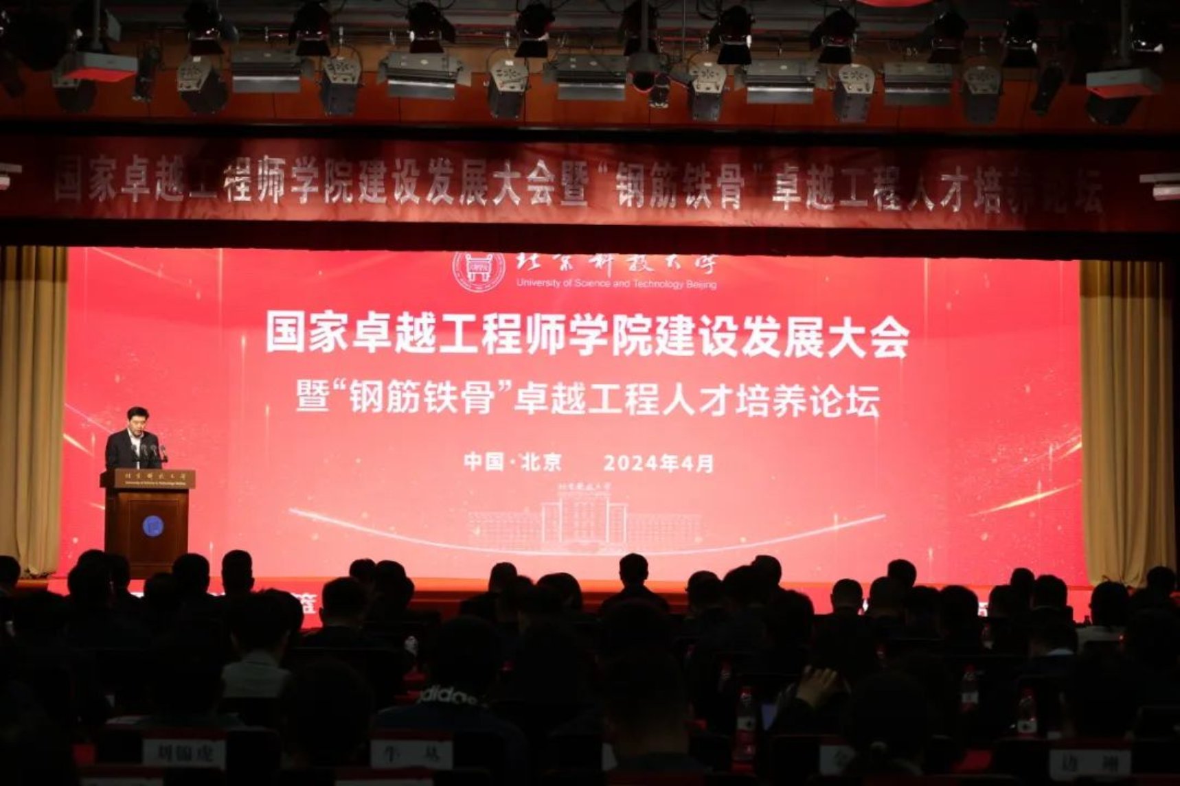 4月19日下午,北京科技大学国家卓越工程师学院建设发展大会暨“钢筋铁骨”卓越工程人才培养论坛在学校成功举办。教育部学位管理与研究生教育司副司长肖甫、北京科技大学党委书记武贵龙、校长杨仁树、党委副书记于成文出席会议。副校长张卫冬主持大会。