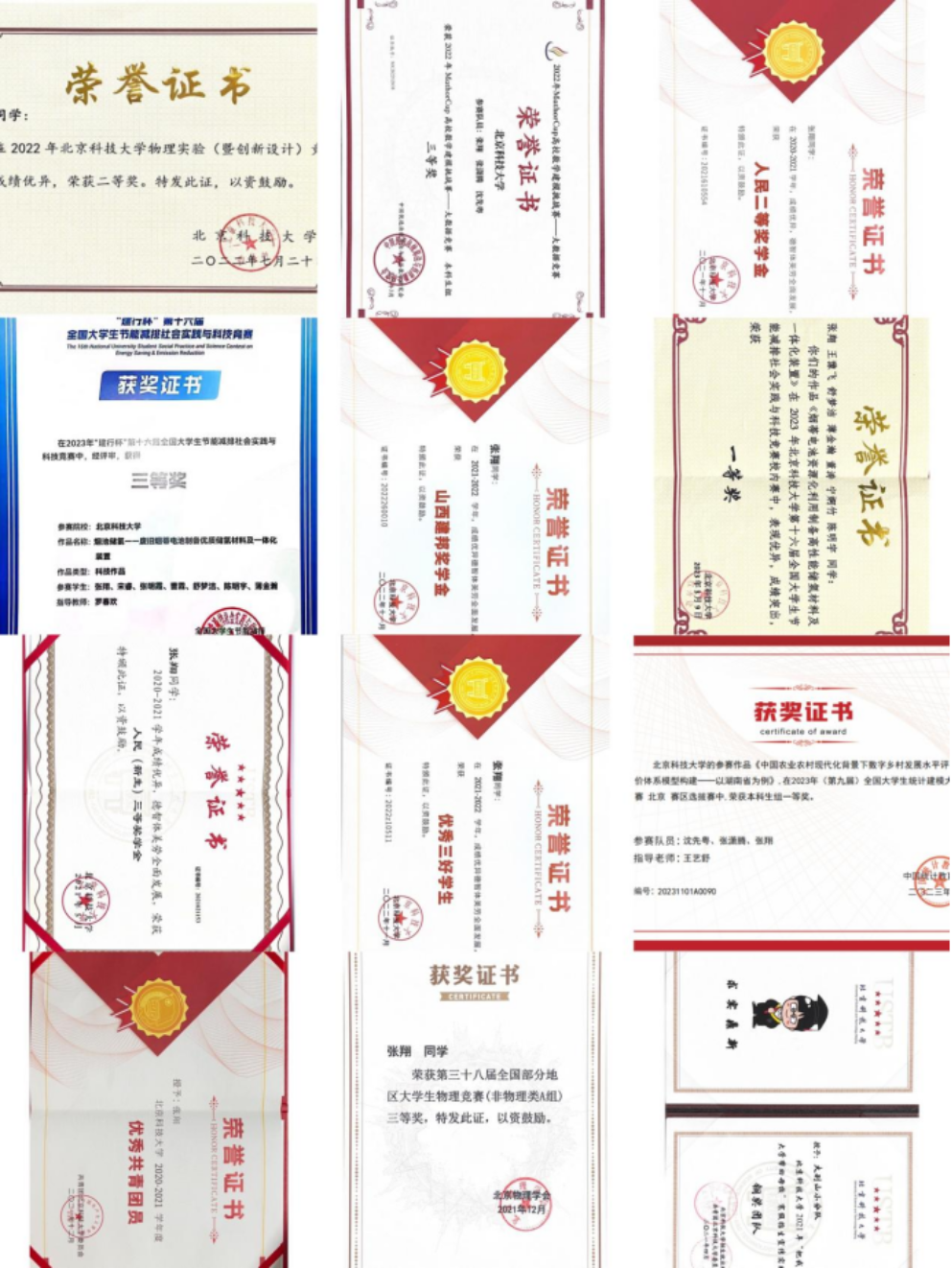 北京科技大学优秀三好学生
