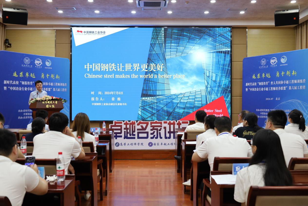 姜维在致辞中对工程营的举办表示热烈祝贺,他指出,新时代高校“钢筋铁骨”育人共同体和中国冶金行业卓越工程师培养联盟深入探索高素质行业人才培养的新理念新模式新举措,特色鲜明、辐射广泛,充分发挥出行业特色高校紧跟国家战略办学、紧贴行业需求育人的重要作用。作为联盟理事长单位,中国钢铁工业协会将一如既往地为钢铁企业与行业高校、科研机构搭建桥梁,与高校院所、行业企业携手同行,将行业资源转化为经济发展的人才优势、竞争优势和发展优势,为实现中国钢铁工业高质量发展,为中华民族伟大复兴铸就钢筋铁骨。