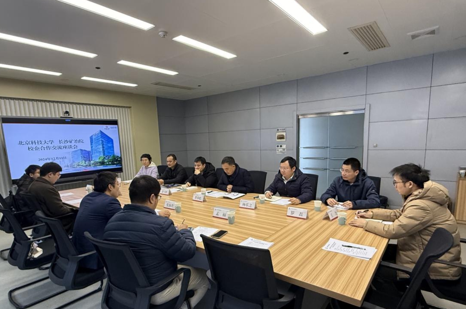 张海君介绍了北科大建校70多年来始终坚持党的领导,“因钢而生、依钢而兴”与国家发展同频、与教育改革同向,具有鲜明的办学特色,在人才培养、科学研究、社会服务等方面取得了一系列重要成果。他对长沙矿冶院长期以来对北科大联合工程硕博士培养改革专项工作的大力支持表示感谢,详细介绍了学校卓越人才培养改革情况和国家卓越工程师学院建设情况,希望校企双方以本次座谈会为契机,在人才培养、校企导师建设、企业特色课程开设等方面共同探索、深度合作。