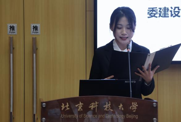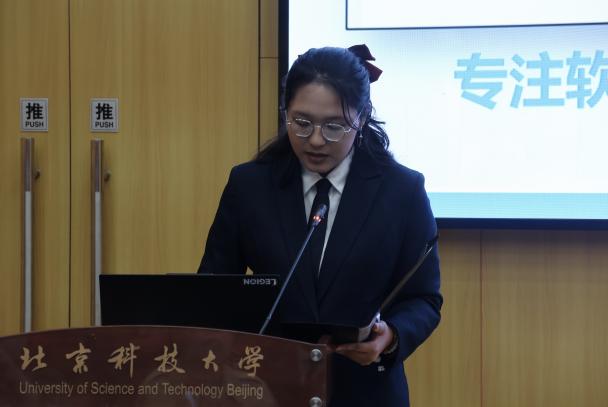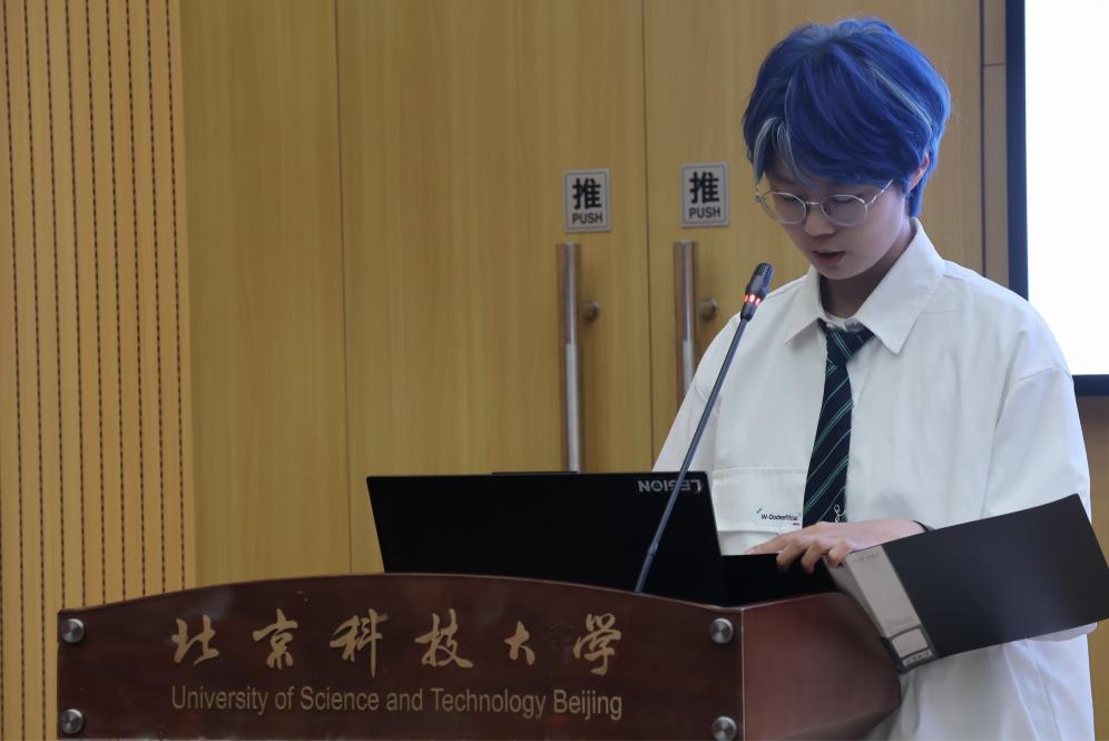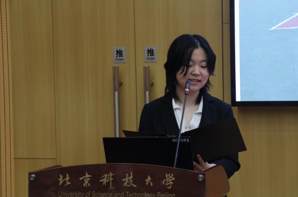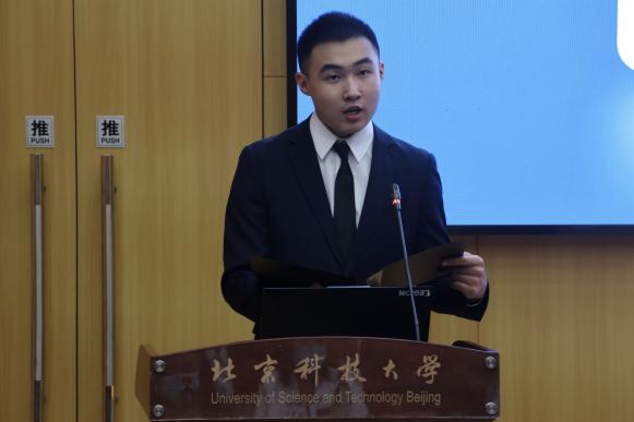在答辩正式开始之前,由北京科技大学2022-2023学年小米特等奖学金获得者、高工2020级学生焦春绚进行了风采展示,为学弟学妹们大学的学习与生活提供了宝贵的经验。