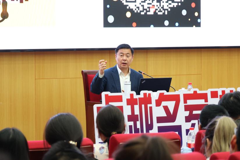 伴随着热烈的掌声,毛新平院士围绕钢铁与人类文明、钢铁材料的特性、碳中和背景下的钢铁工业等主题进行生动讲解,介绍了学校碳中和研究院及团队建设情况,总结了钢铁是人类文明进步和社会经济发展的重要物质基础并作出突出贡献,我国作为全球钢铁的生产和消费中心并逐步成为全球钢铁材料科学与技术中心,将为全球钢铁业的发展和人类美好生活作出更大贡献。报告既讲出了学术理论的高度,又积蓄了工程思想的力量,蕴含着丰富深厚的家国情怀、钢铁情怀,为工程人才培养和学生专业发展注入了思想源动力、奋进新能量。