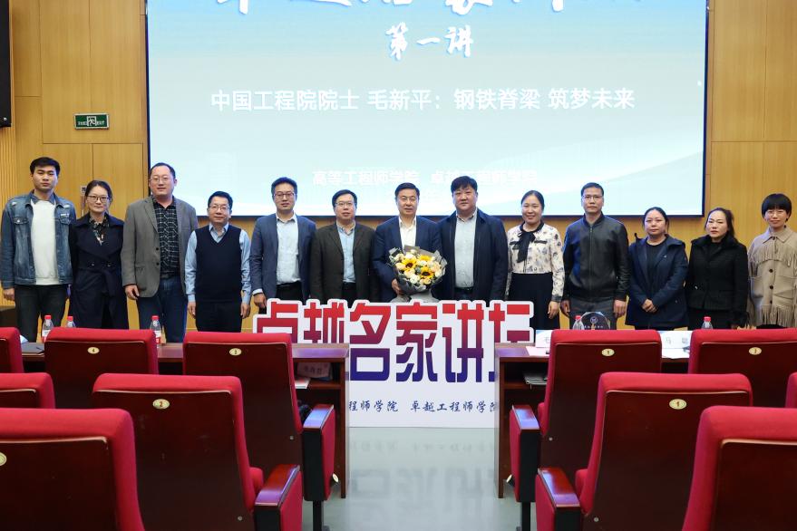 2023年4月11日下午,卓越名家讲坛第一讲在学术报告厅隆重举行,讲坛邀请中国工程院院士毛新平主讲了“钢铁脊梁、筑梦未来”学术报告。28圈娱乐 院长苗胜军、党委书记马聪、卓越工程师学院常务副院长张海君、副院长吕庆功、刘征建、刘娜和近200名师生聆听了此次报告,讲坛由张海君主持。