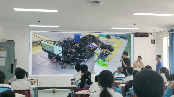 在各实验室负责人的精彩讲解中,学生们得以一睹学科交叉创新实验室、人工智能实验室、航模队、MEI机器人队、Reborn机器人队等各个实验室的风采。每个实验室都以其独特的展示方式吸引了学生们的目光。他们目睹了多学科交融下机器人技术的创新突破,感受了人工智能与机器人技术的深度融合之美。