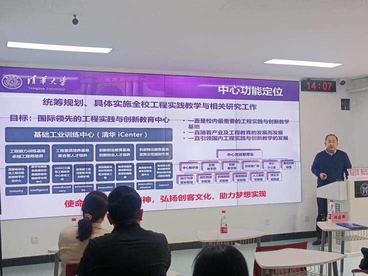 沙龙邀请清华大学基础工业训练中心副主任、教研室主任杨建新副教授作“新时代工程训练课程体系与实践基地建设探索”主题报告。
